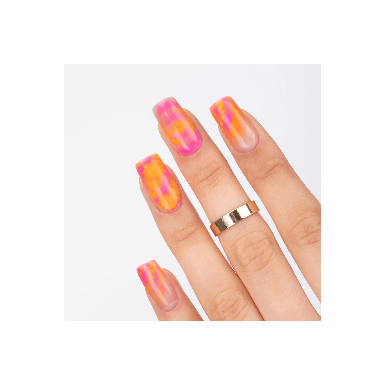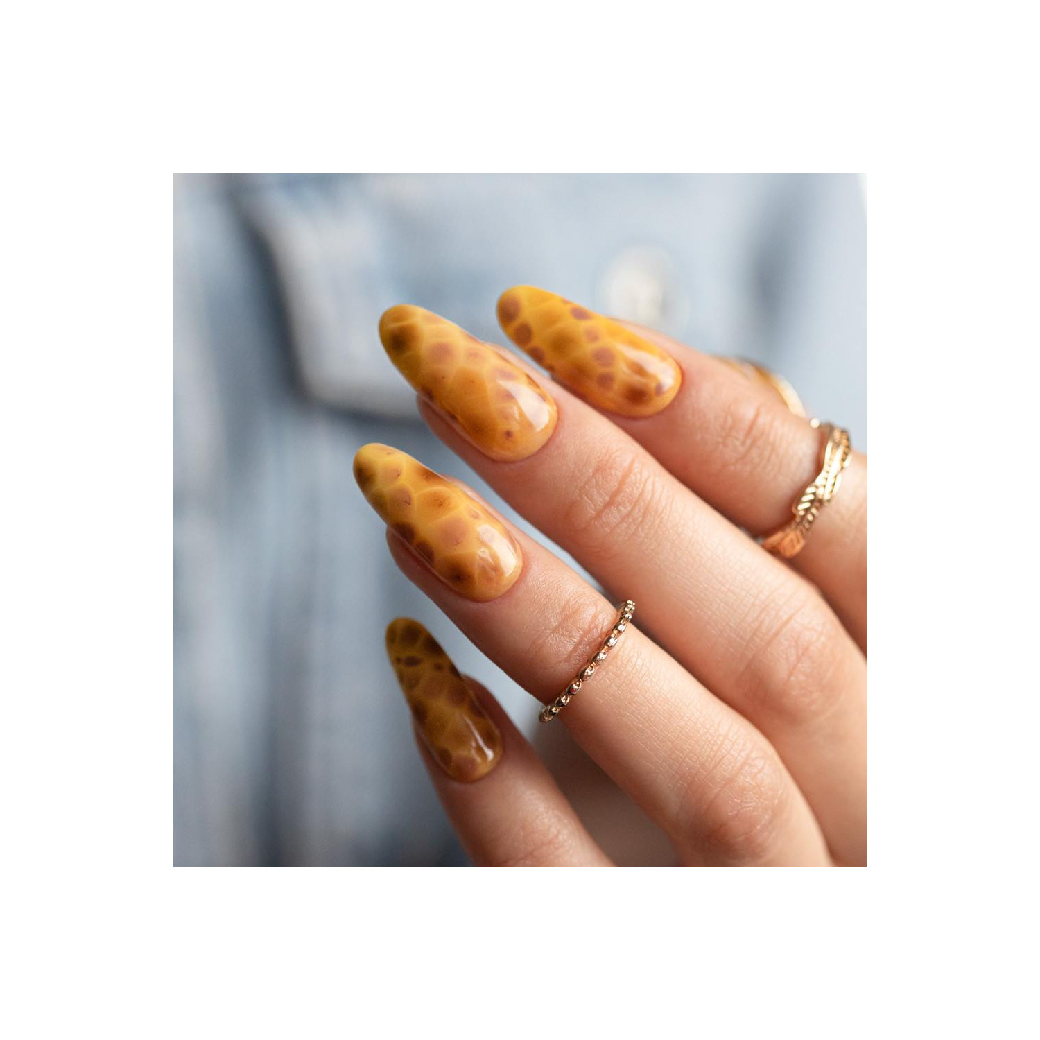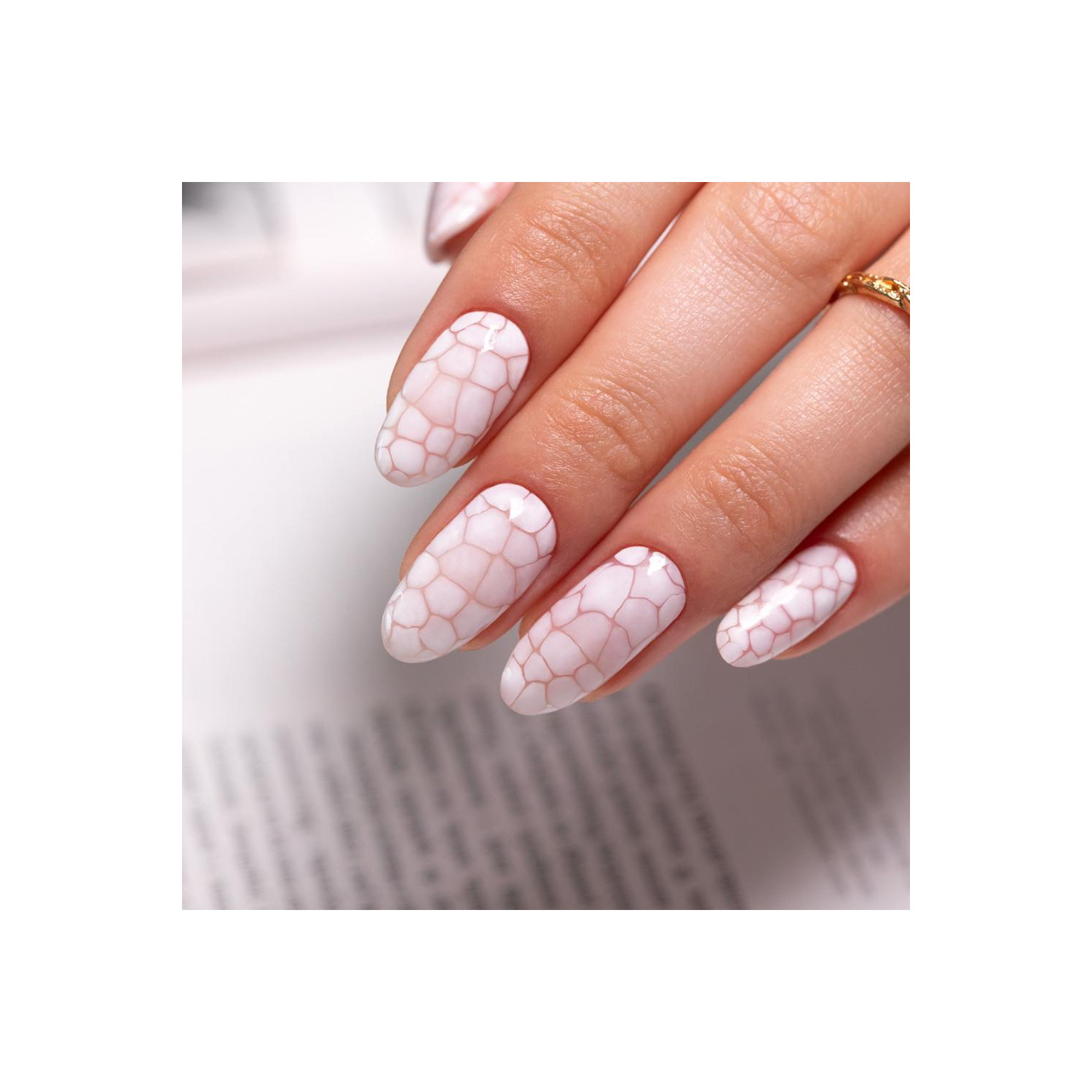 - Auf dem noch nicht ausgehärteten Gel mit UV-Lack gewünschte Muster (z. B. Rosen, Animal Print, Marmor) gestalten.